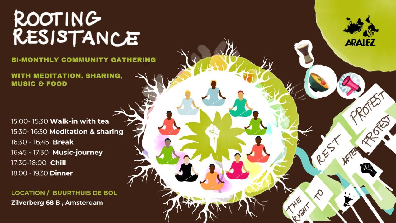 Upcoming events: Rooting Resistance: meditation, sharing, music-journey and food